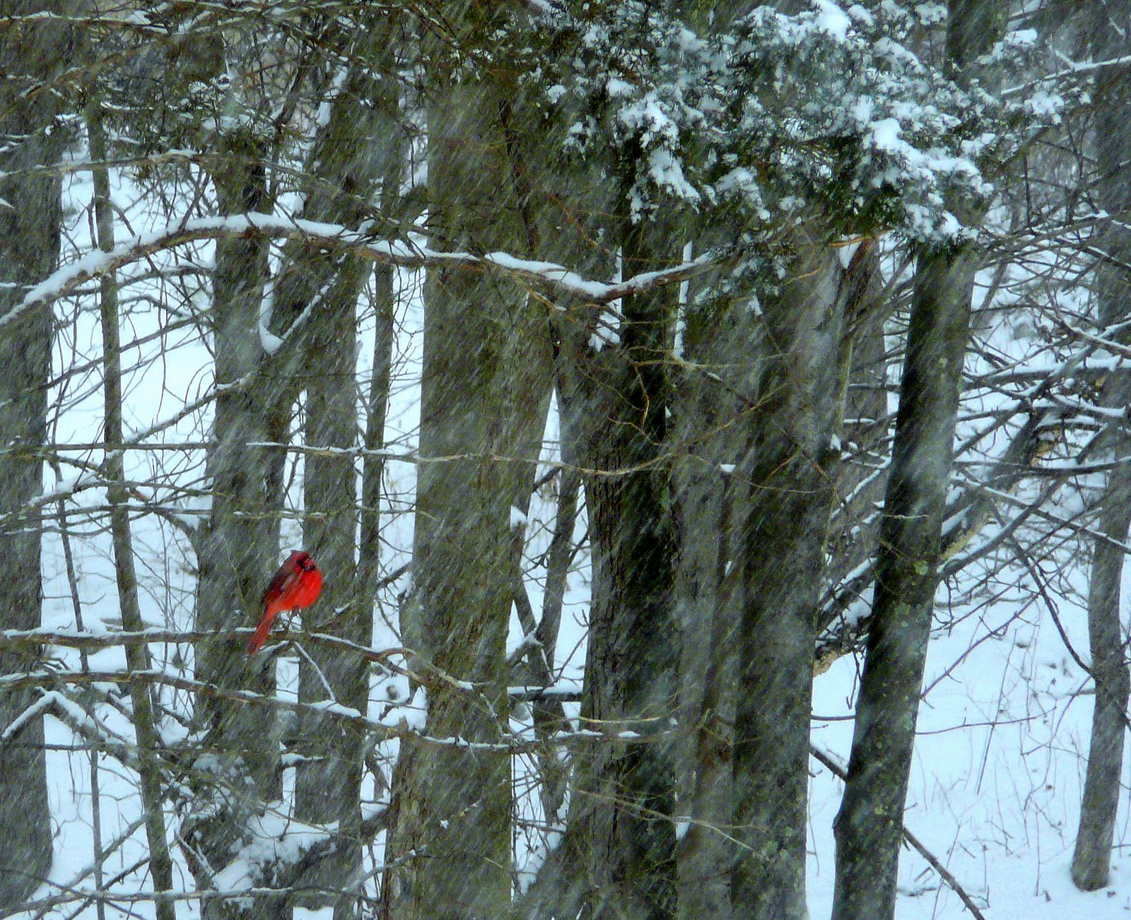 Yesterday was a snow day here so even though I work from home I thought I would take advantage and catch up on some sewing related things. Here is the view from my desk, The birds were lining up for a turn at the feeder all day but I thought the combination of the red cardinal against the greys and white of the day was really lovely.